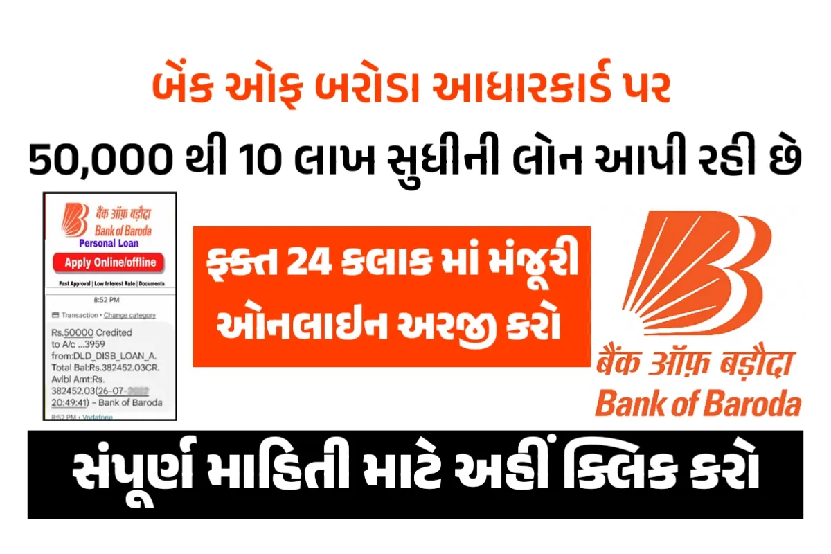 બેંક ઓફ બરોડા આધાર કાર્ડ પર રૂ.50000 થી રૂ.10 લાખ સુધીની લોન આપી રહી છે, આ રીતે કરો અરજી Bob Personal Loan 2025